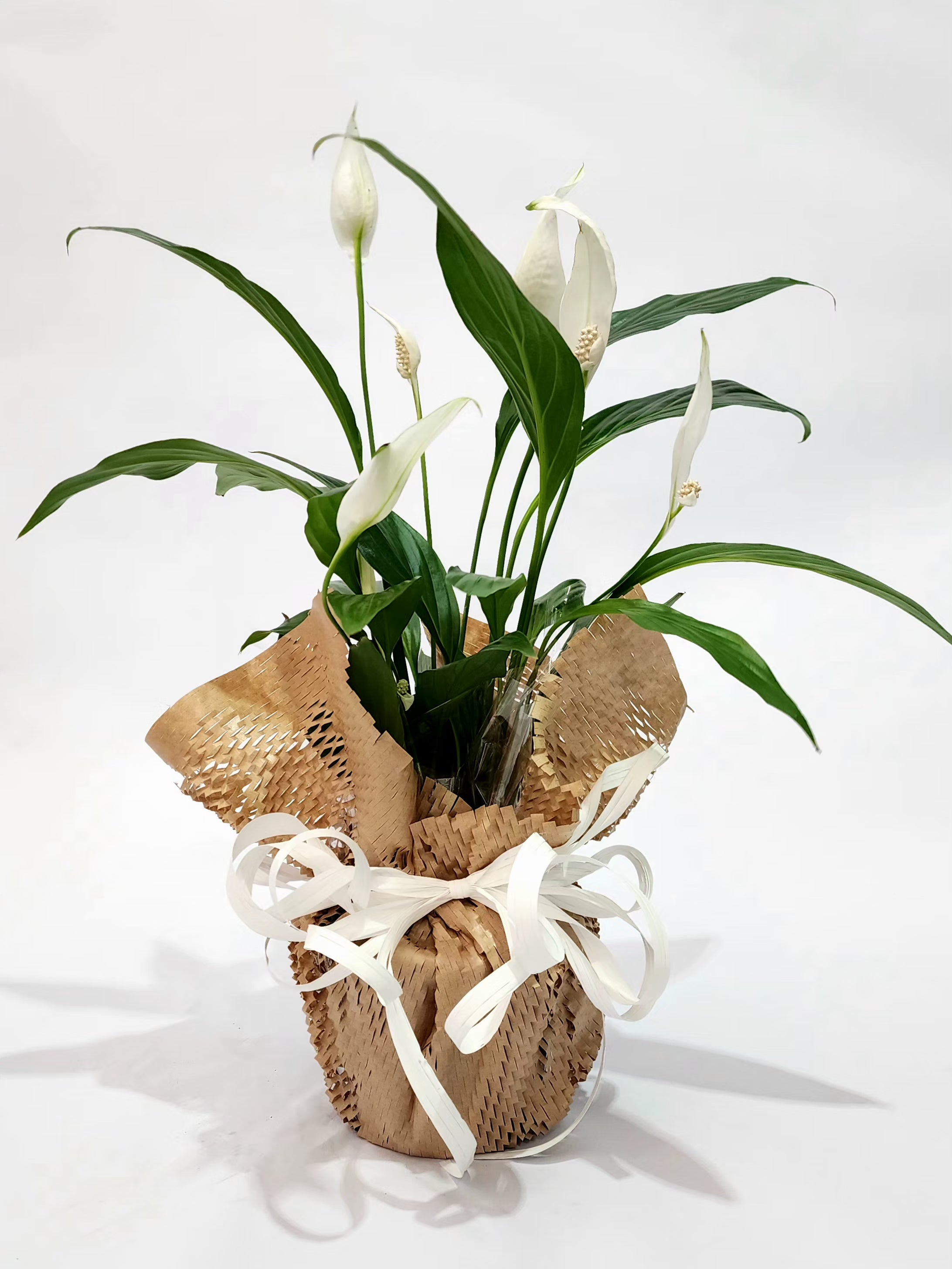Descrição: O Lírio da Paz é uma planta elegante e purificadora de ar, com flores brancas que transmitem leveza e tranquilidade.